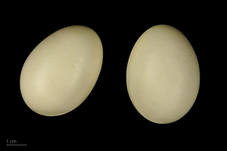 34-38 cm de lonxitude; 64 cm de envergadura; machos con cabeza castaña cunha banda verde, flancos grises; femia marrón moteada