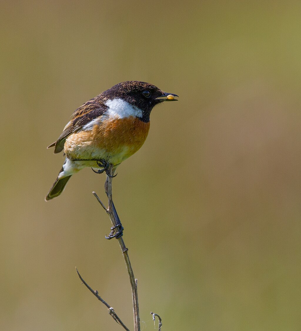 O chasco común é un pequeno paxaro passeriforme duns 12–13 cm de lonxitude. Presenta dimorfismo sexual acusado. O macho ten colorido vistoso: cabeza, garganta e dorso case negros, contrastando cunha mancha grande branca a cada lado do pescozo. O peito é alaranxado intenso e o ventre abrancazado. As alas son negras con pequenas marcas brancas. A femia, pola contra, é de tonalidades pardas: pardo agris no dorso con lixeiro raiado, e peito ocre laranxa pálido, menos vivo ca no macho; a cabeza é marrón escura sen negro sólido. Ambos teñen cola curta de cor negra coas rectrices externas brancas, ben visibles cando abren a cola. Os ollos son negros e o peteiro curto e fino, adaptado para capturar insectos. As patas son escuras e relativamente longas para un pequeno paxaro, o que lles permite pousar en talos ou postes. En conxunto, o chasco ten aspecto rechoncho e cola e ás curtas, exhibindo rápidos movementos de cola e ás cando está inquieto.